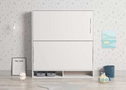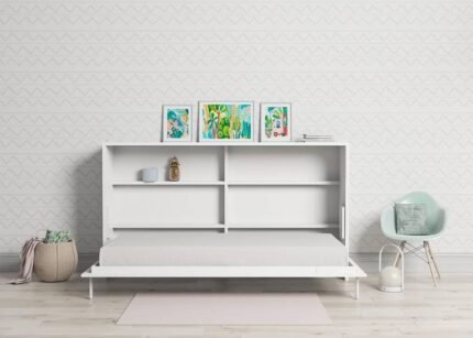 Horizontal folding bed measuring 90 x 190 with table and interior shelves