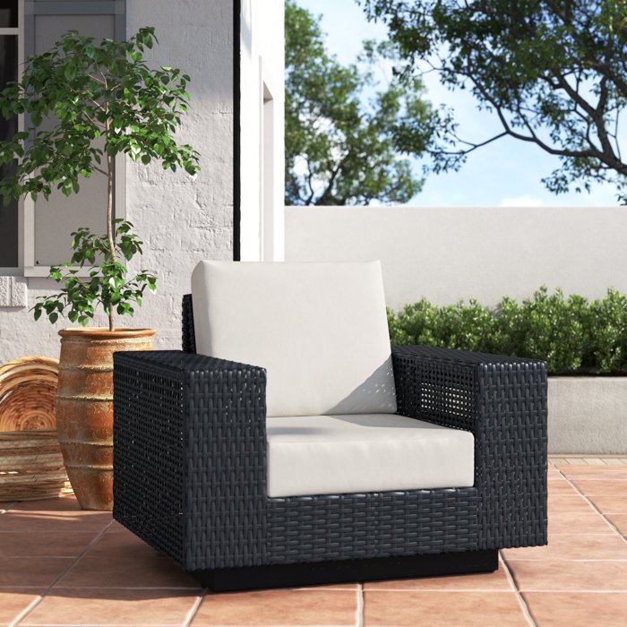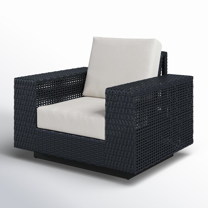 Here’s a patio lounge chair designed to bring effortless mod style to your backyard or deck. Crafted with durability in mind, an inner aluminum frame is wrapped in wicker rattan for a hint of breezy charm. White-toned seat and back cushions are resilient and generously padded for just the right amount of support as you sit and sip your favorite warm-weather beverage. When it needs a refresh, unzip the cover and toss it into the washing machine. And the best part? The base swivels, so you have a heightened sense of movement.