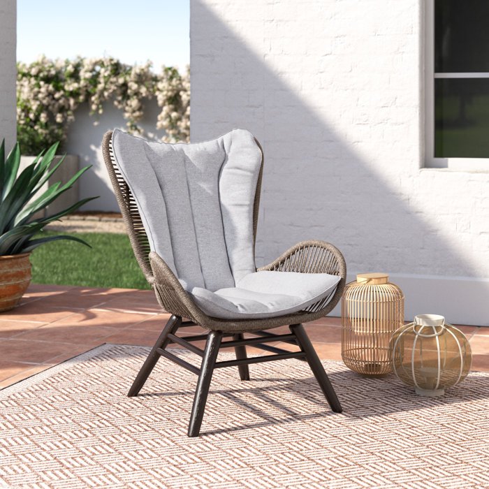Soak up some sunshine with this outdoor wingback chair. It sits on splayed legs for an airy twist, and it features a woven rope design that’s always in fashion. We love that this chair includes a curved cushion for all-day lounging. Plus, it comes in your choice of color to suit your space. Style this chair solo or in pairs beside a bold cocktail table (sold separately).