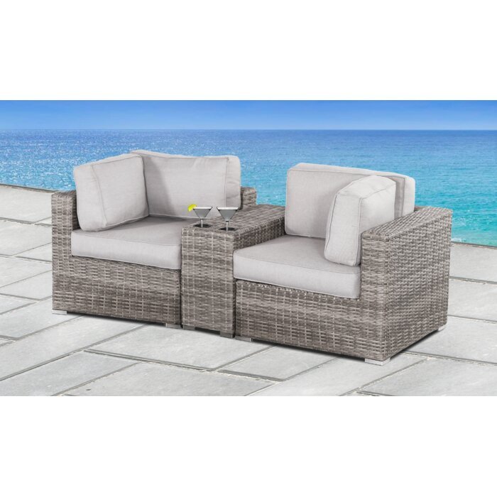 Their designers are thrilled to present this amazing loveseat with cushions. Handcrafted from weather-resistant strands of round wicker incorporating a magnificent array of neutral tones, this loveseat is sure to be a crowd favorite. With their exclusive 5? thick ultra-soft cushions, this piece comprises the perfect balance of beauty and functionality. This loveseat is an ultimate showstopper that will enhance the look of any outdoor living space.