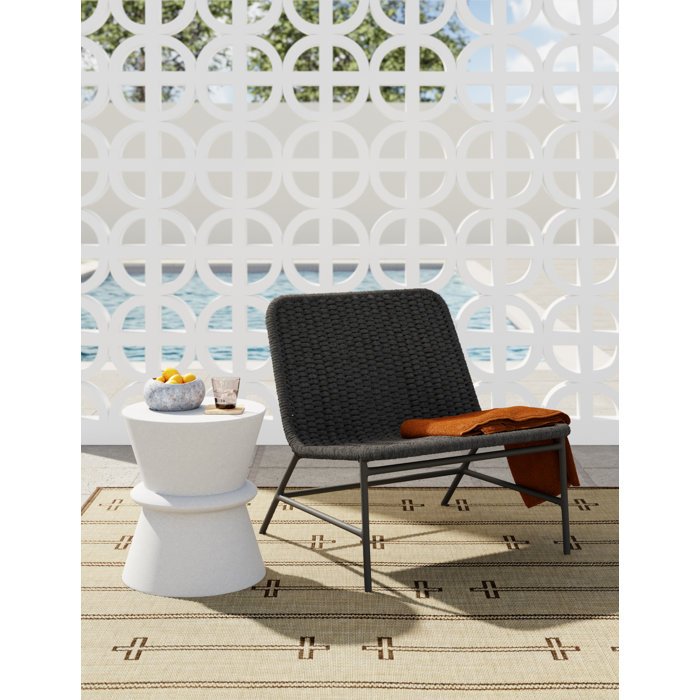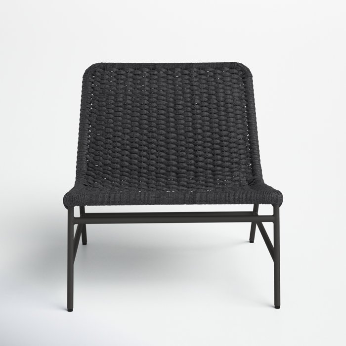 A simple, textural take on outdoor-friendly seating. Black-finished aluminum armless framing welcomes dark gray rope, for a sleek look with underlying depth. Cover or store indoors during inclement weather and when not in use.