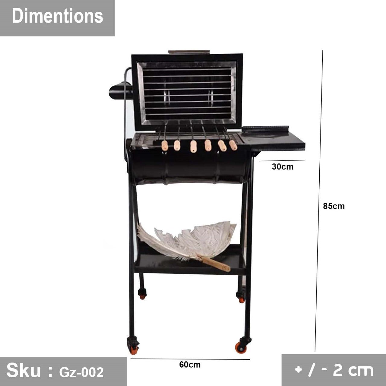 It is made of high-quality materials, argon welding and electrostatic paints. It has a grill grid made of heat-resistant stainless steel. It is easy to transport and store. It comes with skewers and a hob and is availabfor grilling on both sides.
