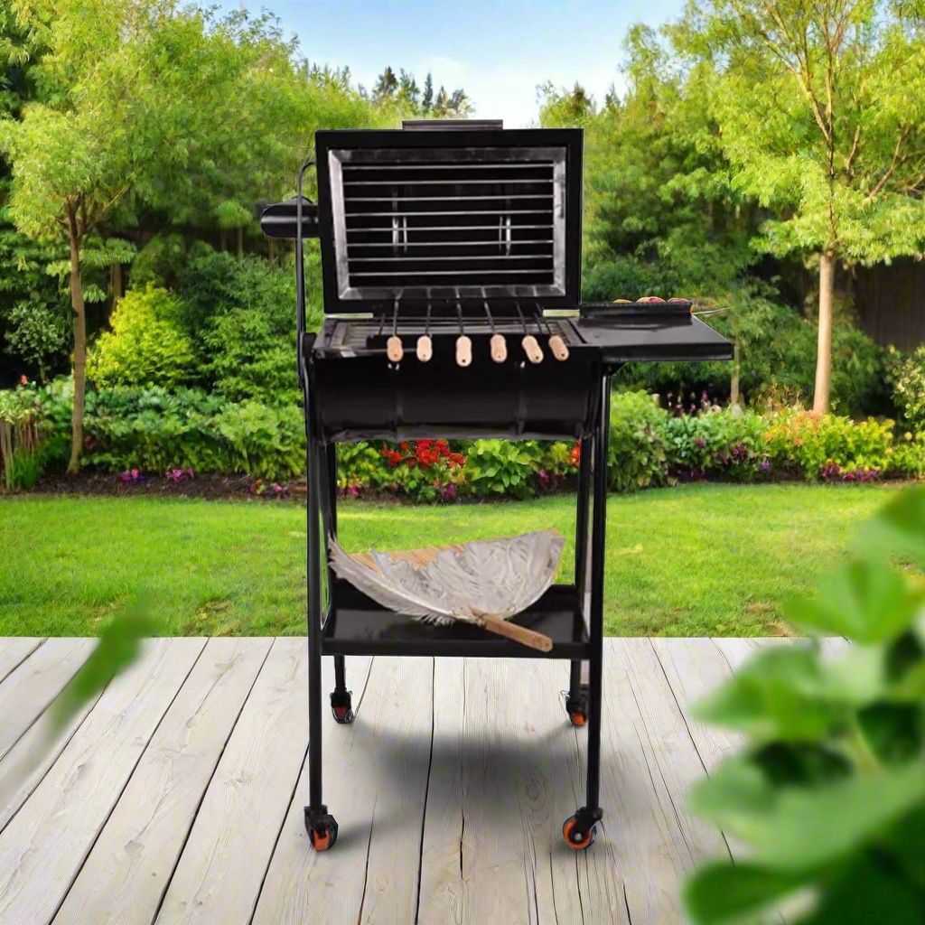 Charcoal grill with side rack – perfect for outdoor family gatherings