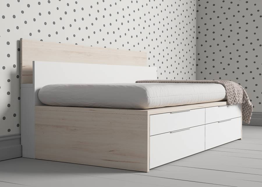 We present this compact with 2 drawers and two containers , for a 90 x 190 mattress.