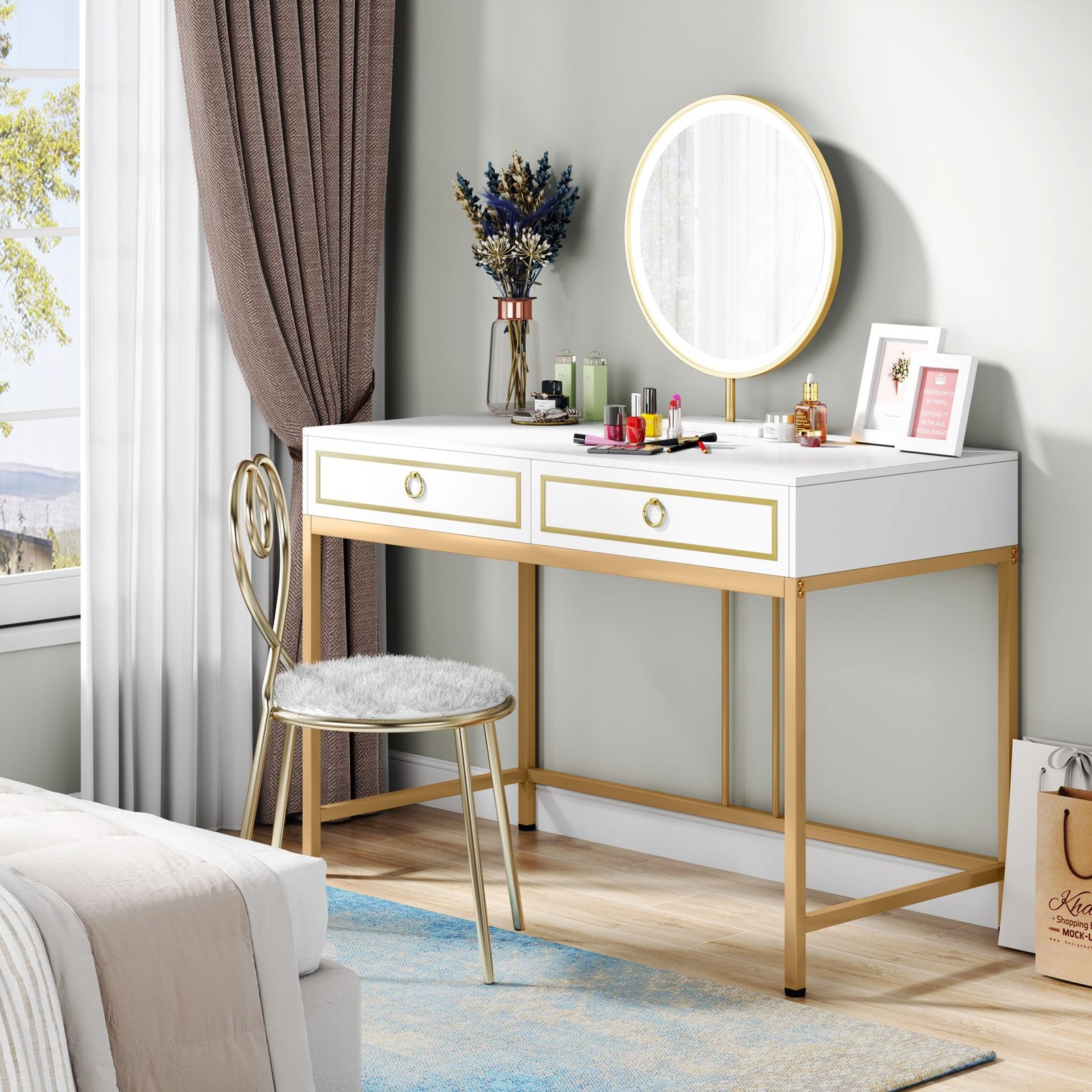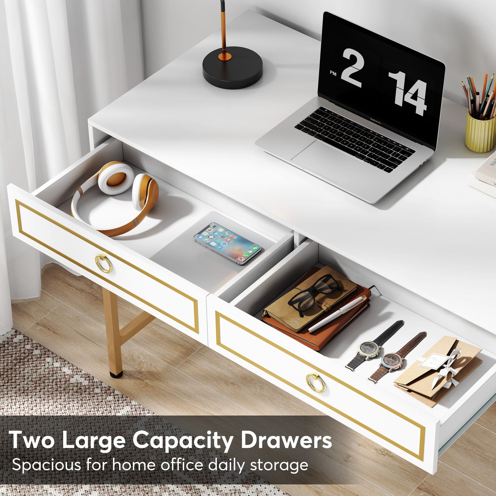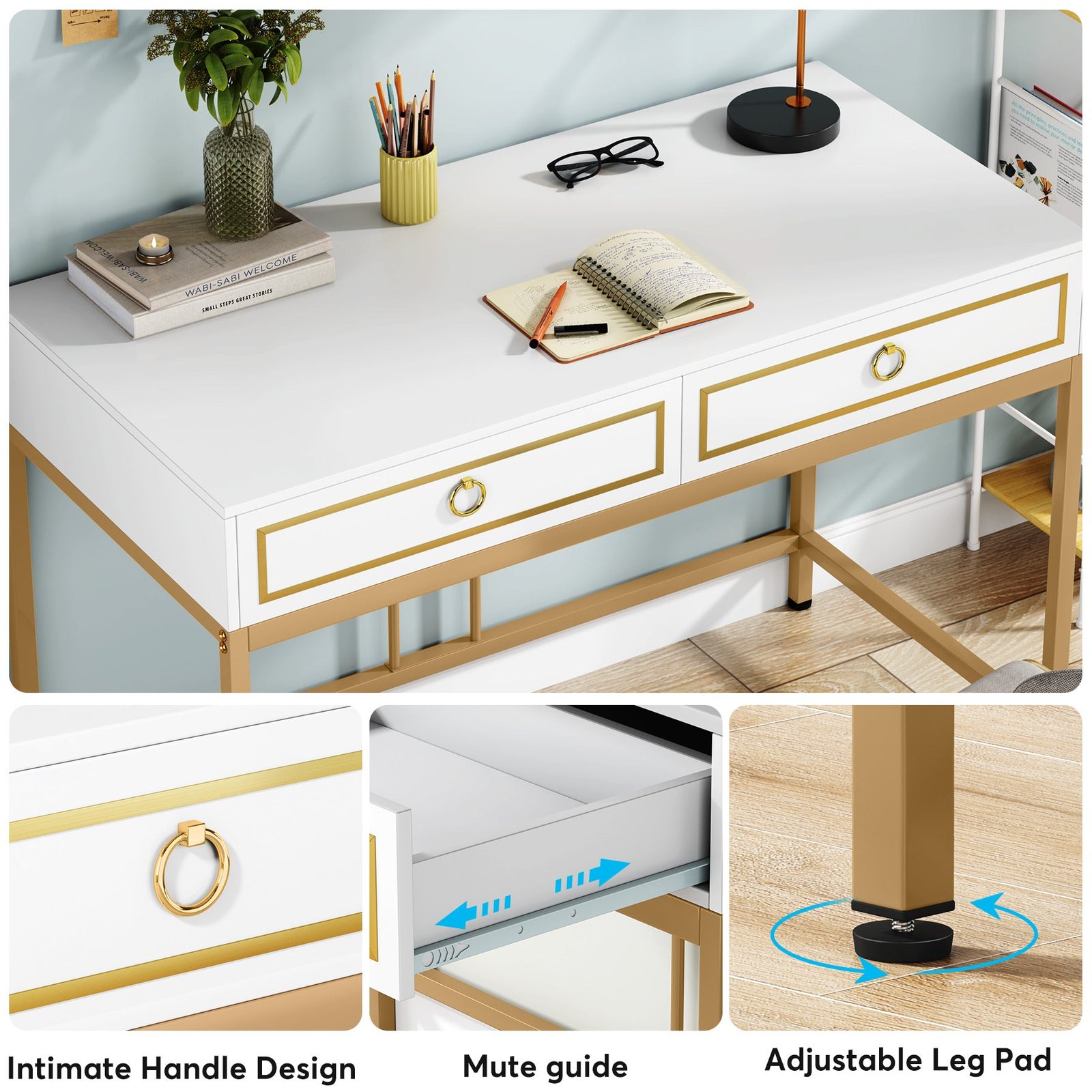 Modern Simple Style ? Classic white tabletop paired with attractive golden metal legs, adds a touch of luxury to your interior design. Naturally matches most interior design schemes, perfect for your home or workspace.