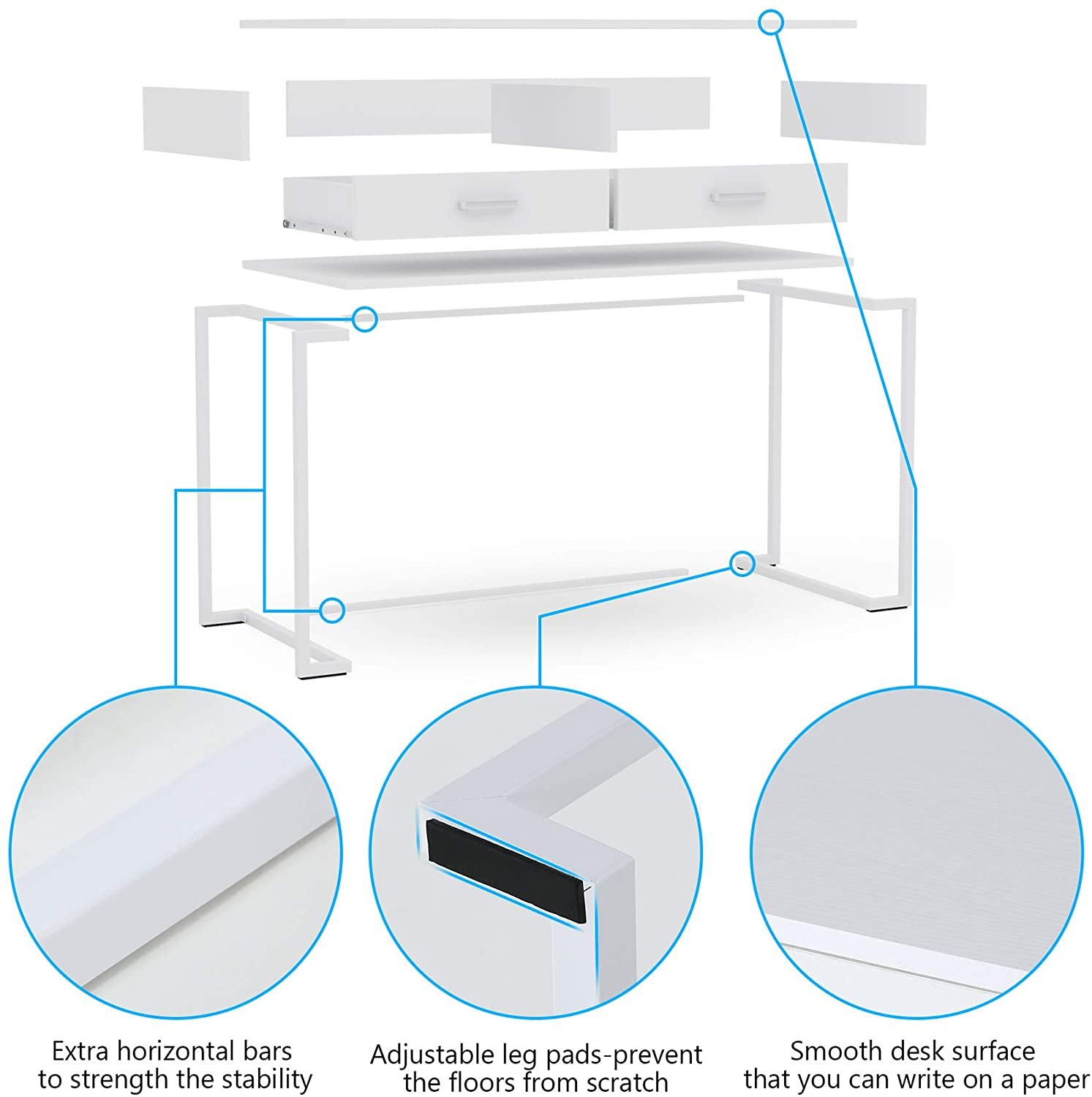 Computer Desk, Modern Writing Desk with Drawers