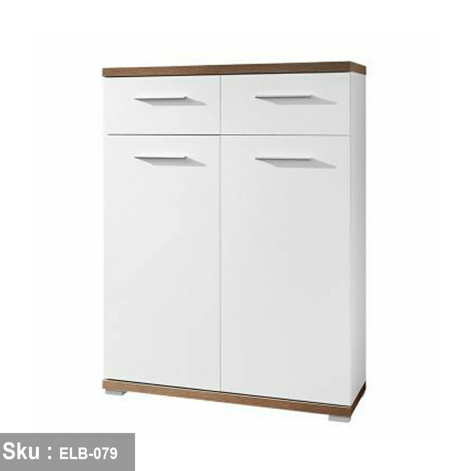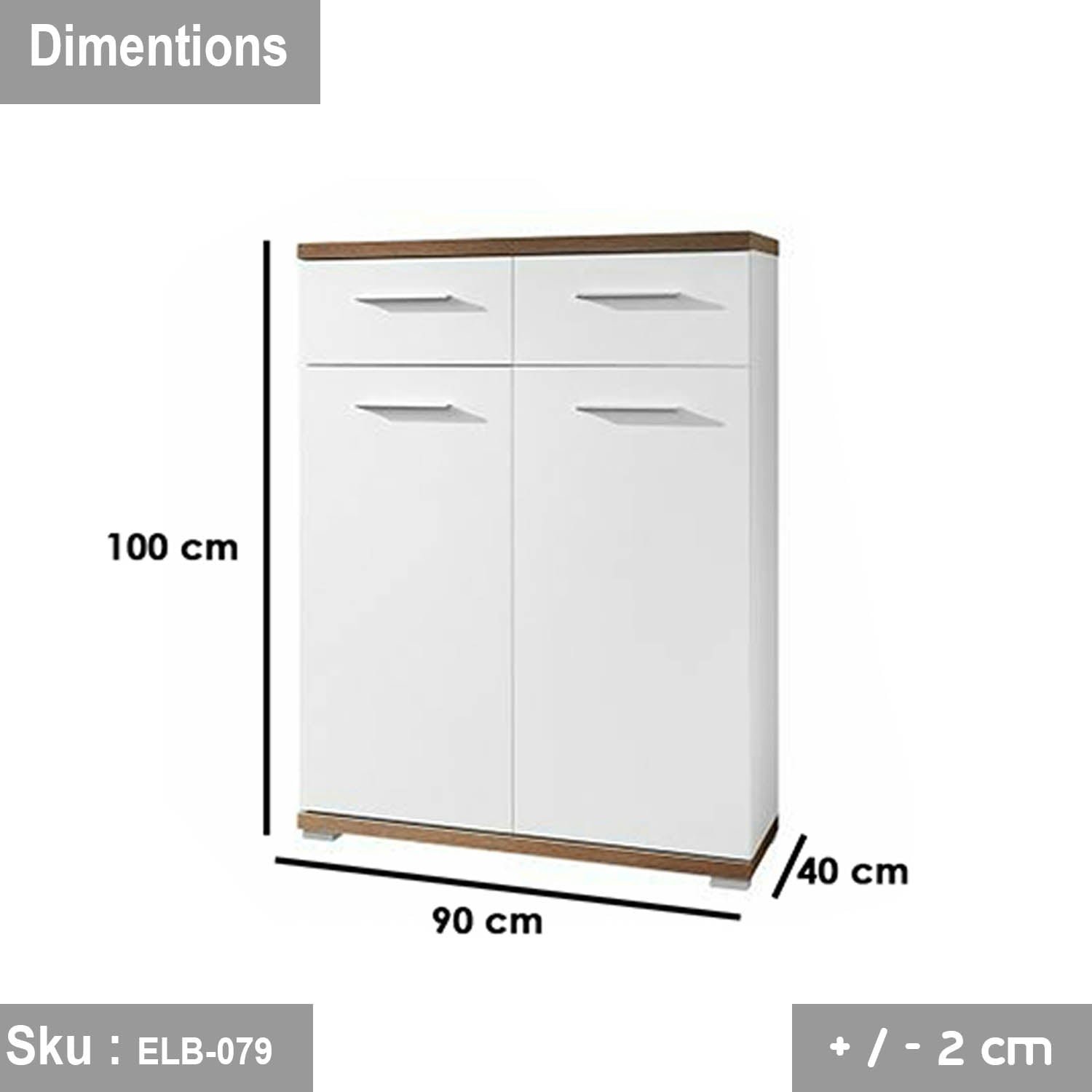 Made of high-quality MDF wood, it consists of two drawers and a storage unit with 5 shelves.