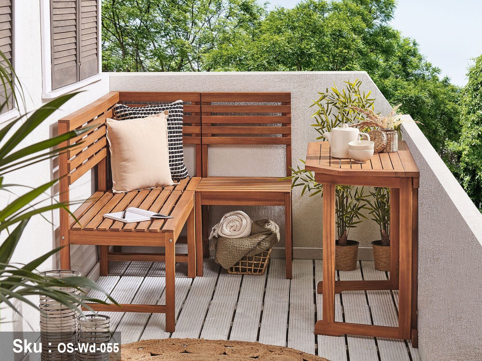 Create a comfortabcorner in your outdoor area. The modern design with the structure made of Roman red beech wood for this piece of furniture is sure to decorate your garden, patio, or terrace. There is a tabwith the product, which guarantees you a side space for your drink, and you can now purchase an outdoor waterproof cover. To maintain your outdoor furniture here