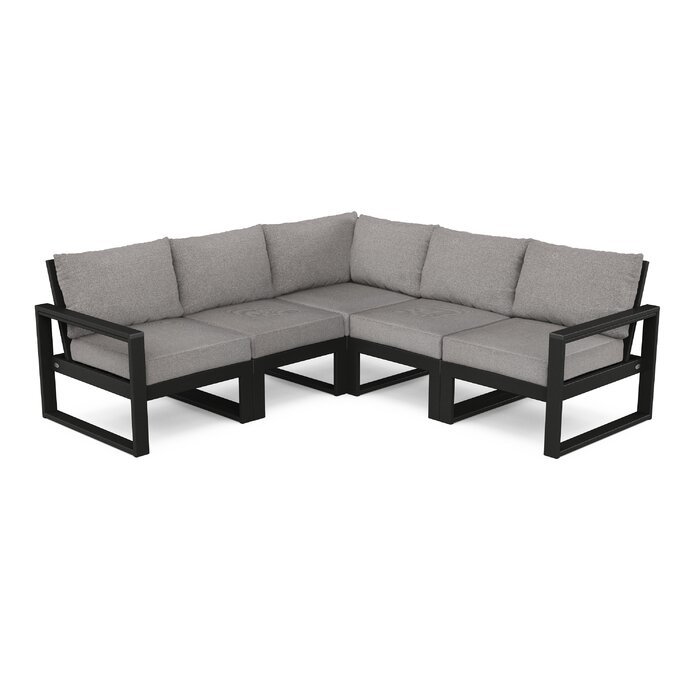 Designed for comfort and style, the EDGE modular collection is scaled for a variety of outdoor living areas ? from a spacious patio to an intimate balcony. Custom-fit this modern modular set to your outdoor space with one of three configurations. With sleek, angular lines, the EDGE 5-piece modular deep seating set seats four to five people and features plush pillow-back cushions as well as supportive seat cushions covered in high-performance outdoor fabric.