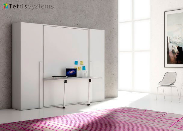 - Vertical folding bed measuring 150 x 190 with built-in table.