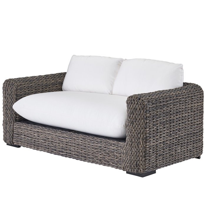 The Gazala Loveseat offers the best of coastal style paired with outdoor functionality, showcasing a cozy one-cushion seat neatly nestled within a Tawny-finished wicker frame.