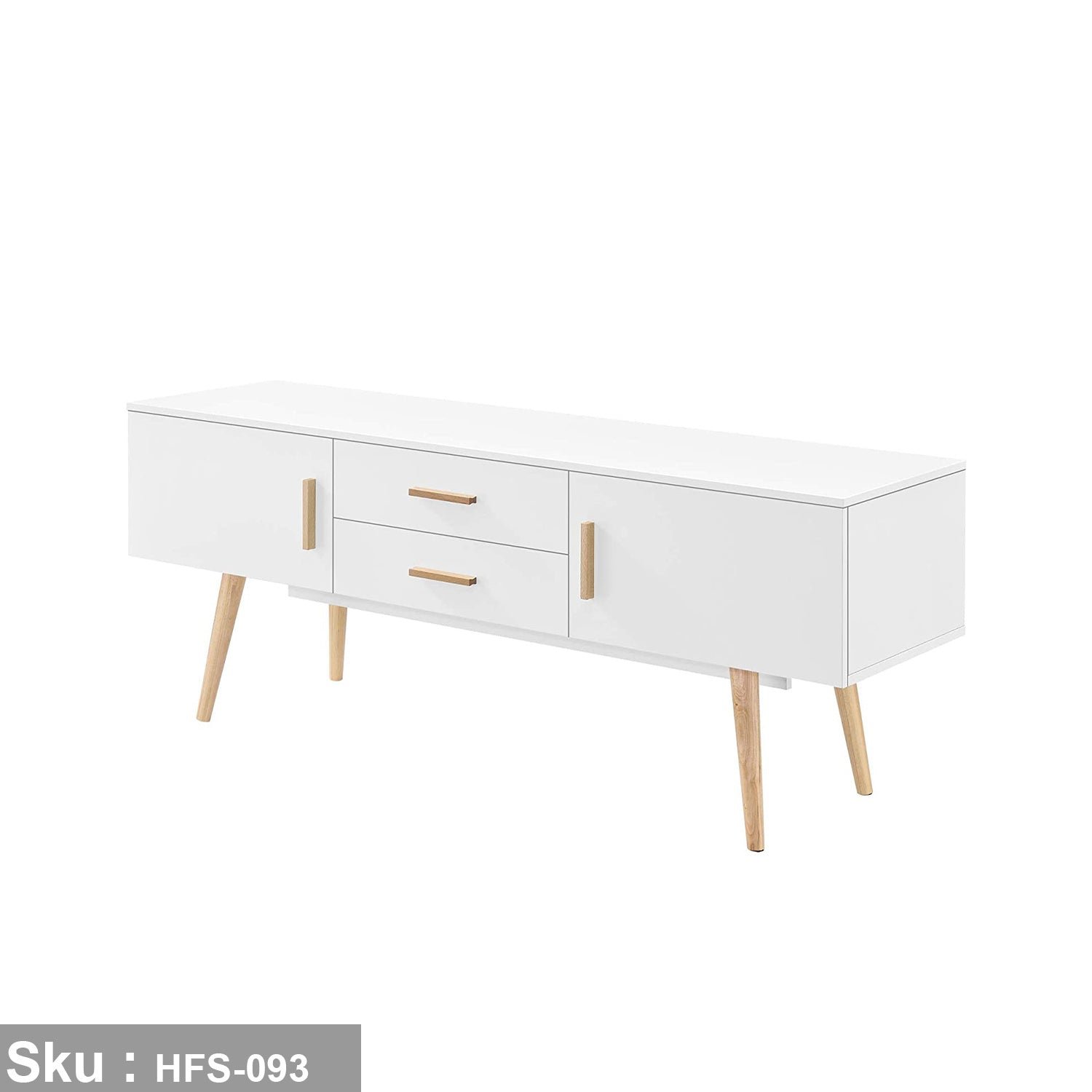 Add a touch of luxury to your living room with this TV table made of high-quality MDF wood. Enjoy its modern and elegant design, and take advantage of its spacious space to display your TV and place other electronic devices in a neat and organized manner. This product is distinguished by its reasonable price, which makes it available to everyone through Oscar Rattan.