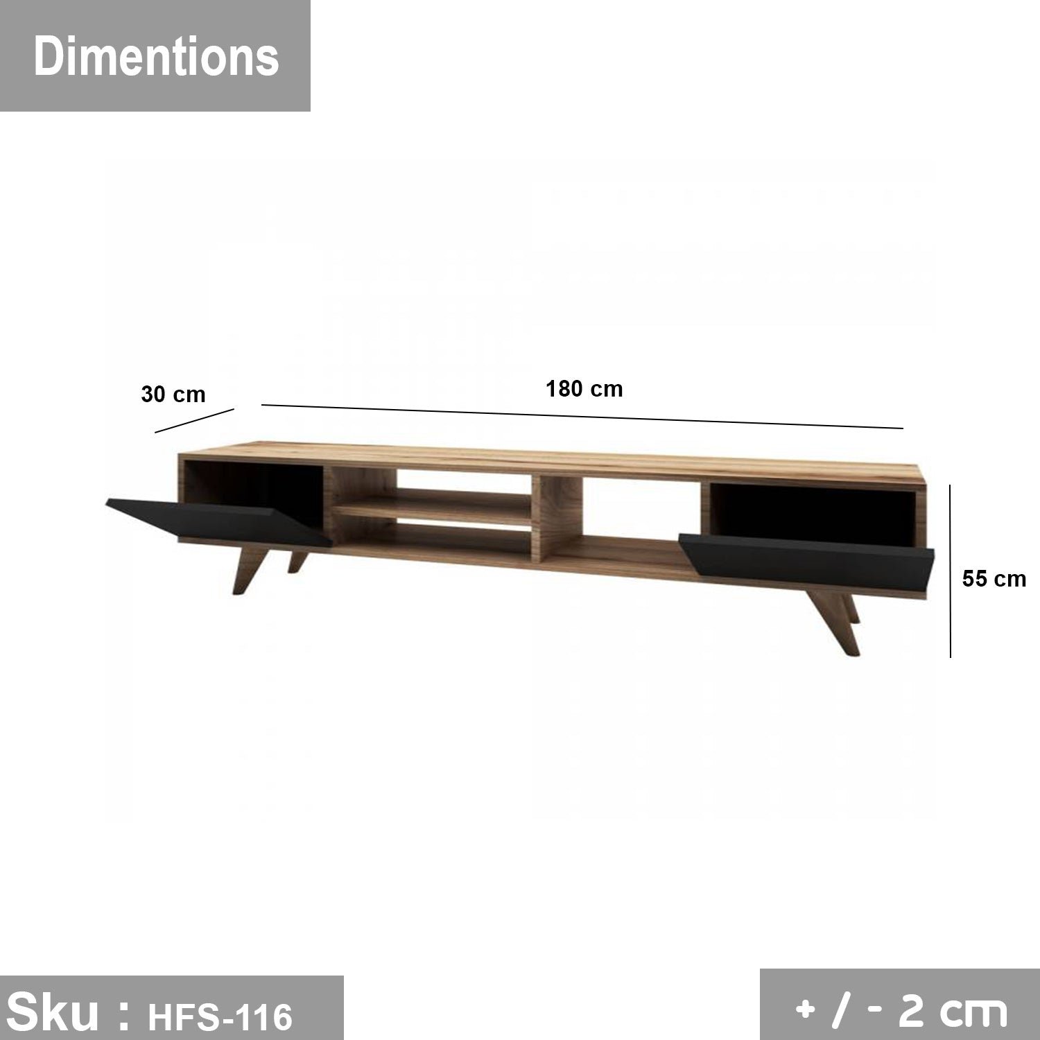 Add a touch of luxury to your living room with this TV table made of high-quality MDF wood. Enjoy its modern and elegant design, and take advantage of its spacious space to display your TV and place other electronic devices in a neat and organized manner. This product is distinguished by its reasonable price, which makes it available to everyone through Oscar Rattan.