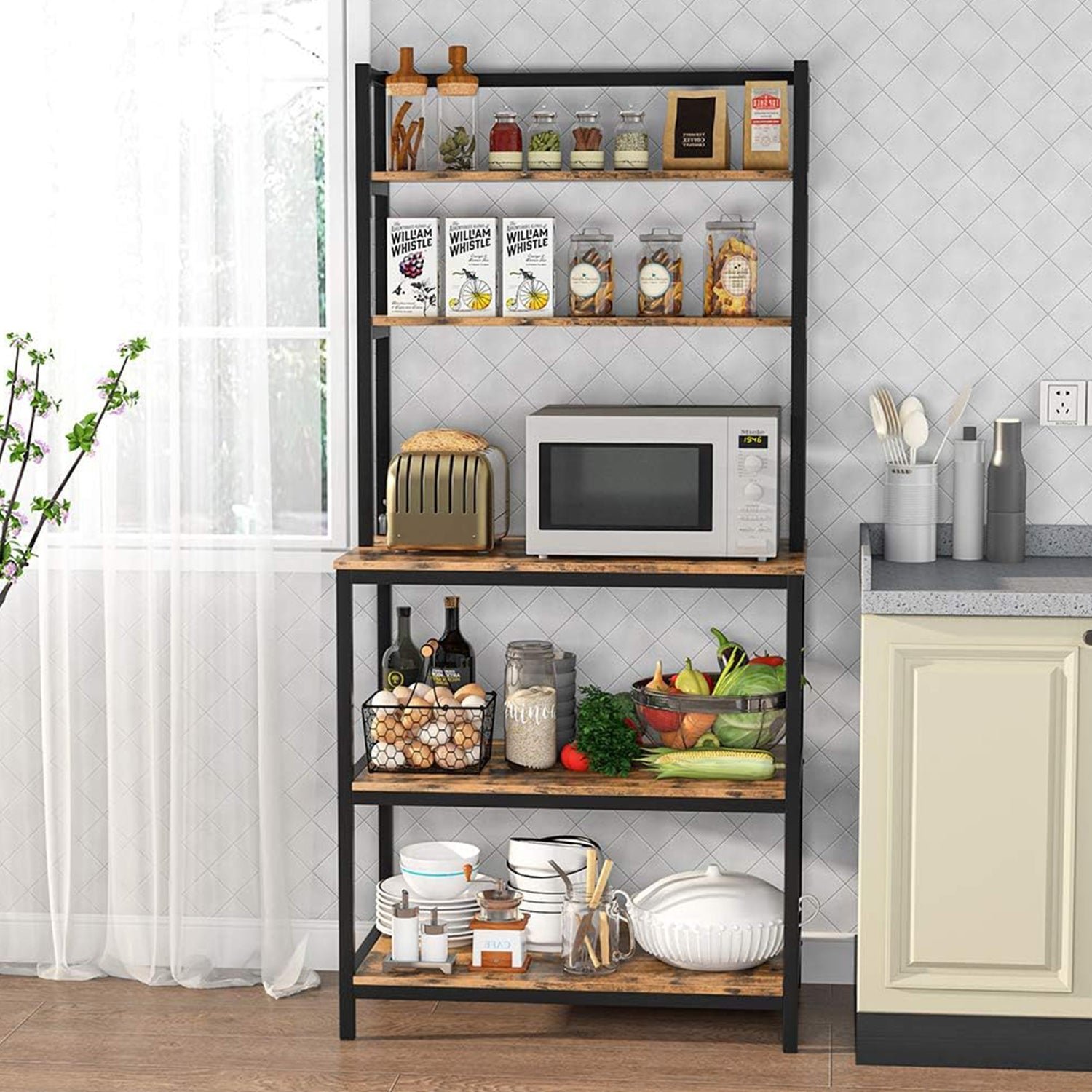 A practical and modern kitchen storage unit designed by Oscar Rattan, made of durable metal with an elegant finish, providing an ideal solution for kitchen organization while adding a modern touch that combines function and beauty.