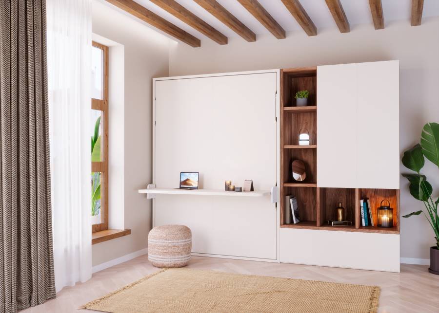 Are you looking for a multifunctional solution for your living room, office or guest room? This fold-down bed with sofa is the perfect combination of a comfortable bed to sleep on, a cosy sofa to rest on and a practical wardrobe and shelving to store your things. This ambiance is not only functional, but also has a modern and elegant design that adapts to any decorative style. Don’t wait any longer and get this versatile and practical piece of furniture to optimise the space in your home without giving up comfort and style!