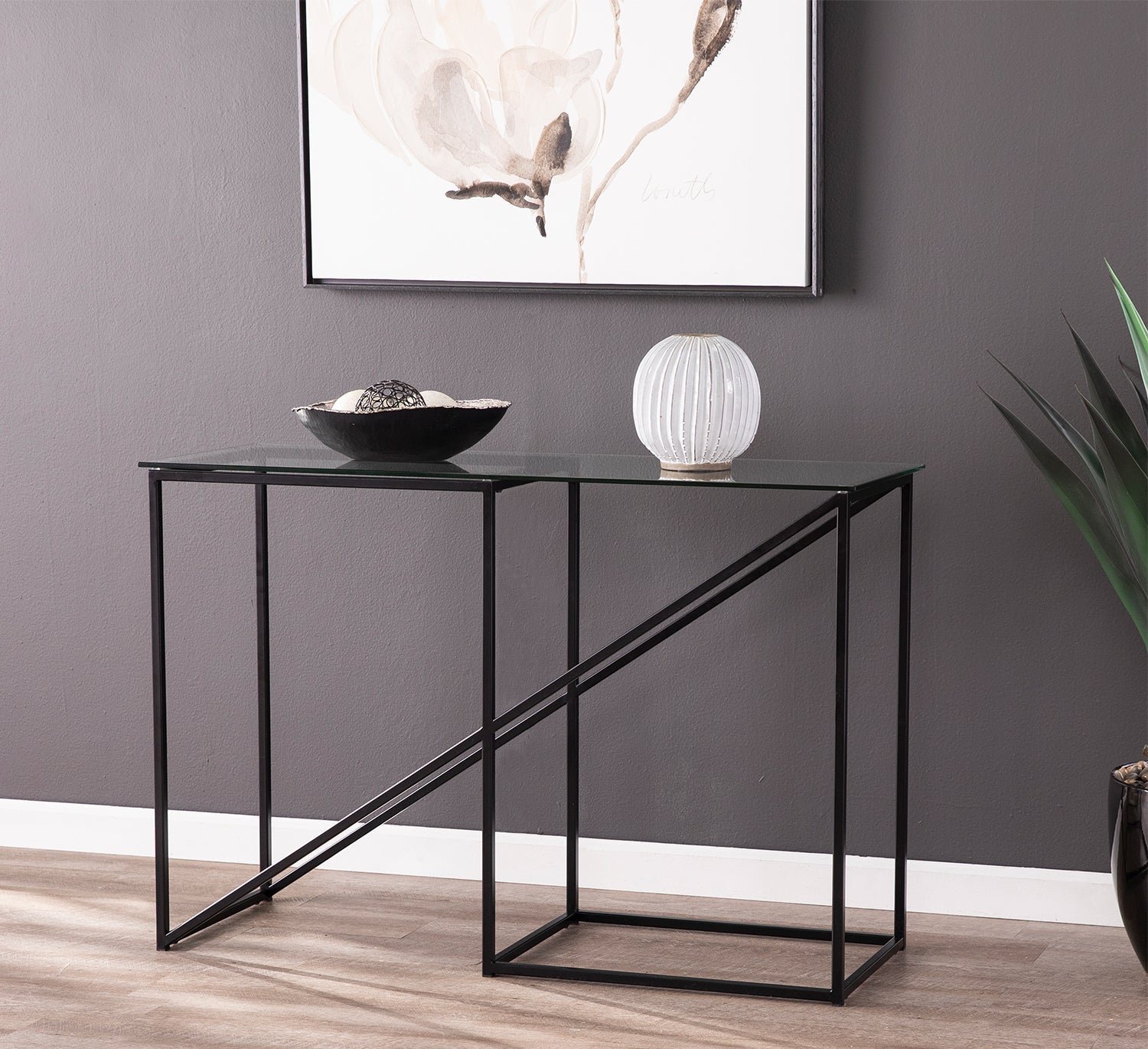 Iron console with electrostatic paint