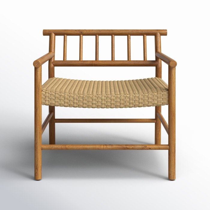 Inspired by the streamlined shapes found in traditional Bodan furniture for a benchmade feel and a crafted minimalism look. Rounded legs and matching spindles on back of this outdoor chair are crafted from FSC-certified teak. Finished with an all-weather wicker seating. Cover or store indoors during inclement weather and when not in use.