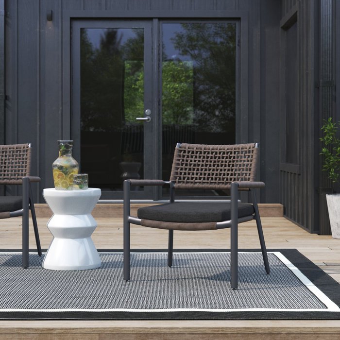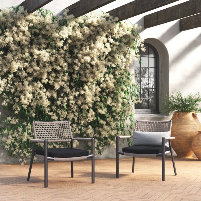 “Get ready for a breath of fresh air! This pair of armchairs, handcrafted with weather-resistant wicker, lives up to your outdoor living dreams. The aluminum inner frame offers durability while the composite cord exterior gives it that breezy, beach-house vibe. Settle into the foam-filled Olefin cushions – they’re designed to resist mold, mildew and are machine-washable. Plus, these chairs are stackable for efficient storage. Your patio never had it so good!”