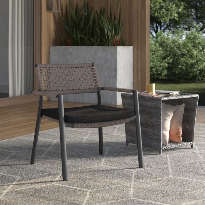 “Get cozy under the stars! This armchair is your new favorite spot for summer nights. Crafted from aluminum and wrapped in weather-resistant wicker, it’s resilient to the elements and perfect for year-round use. The open weave design allows breezes to flow through, while the foam-filled cushion offers a comfy spot to sit back and relax. Plus, the cushion is both removable and machine-washable, making upkeep a breeze. Just imagine, you, a good book, and this chair on a warm summer night. Perfect, right?”