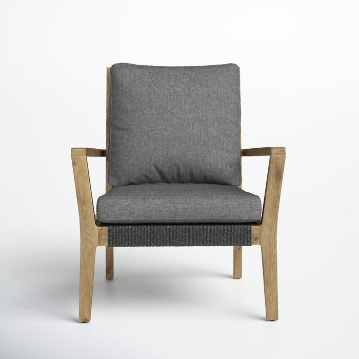 Say hello to your new favorite spot, our weathered steel armchair. Crafted from a blend of solid and engineered wood, it boasts a sturdy construction that’s ready to handle life’s everyday moments. The design showcases a balance of rustic and contemporary aesthetics, with a generous seating space enhanced by two plush, removable cushions. So why not make your living room or patio a little more inviting? Plus, when it’s time for a refresh, just slip off the fabric covers for a quick clean.