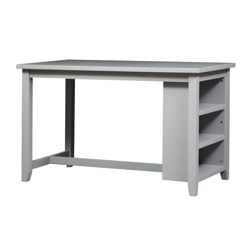 The table is constructed of natural wood and has an open base with a stretcher bar in a neutral finish. Plates, your favourite pots and pans, and your spice collection may all be stored on three built-in shelves. The seats of the four included stools are upholstered in polyester and filled with foam to provide exactly the appropriate amount of support while sitting. Nailhead trim surrounding the seat adds to the traditional look.