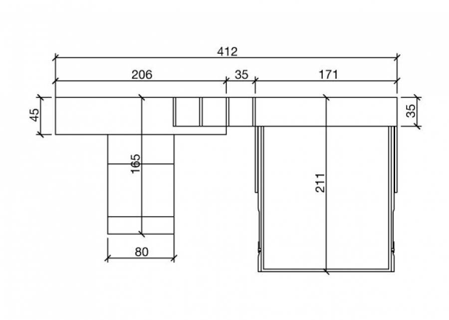 The central module hides an 80 cm wide extendable table , which we can easily extend whenever we need it.