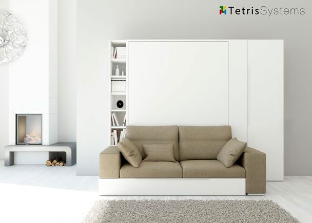 The DIVO collection of folding bed systems with sofa offers us the possibility of using the bed without moving the sofa; simply by removing the backrest cushions and placing them inside as a headboard to create a comfortable 150 cm bed.