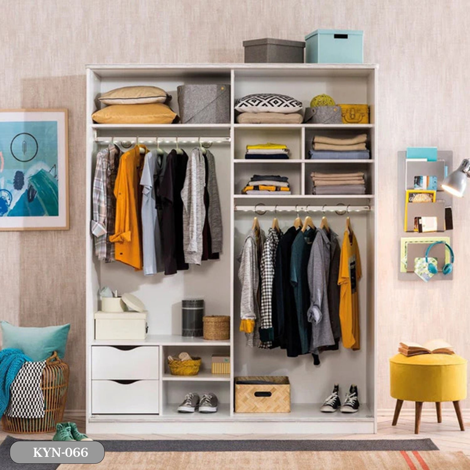 The MDF armoire from Oscar Rattan features a modern and practical design that suits various interior decor styles. Provides ample storage space to organize clothes and personal items, with multiple shelves and rods for hanging clothes, helping to keep things organized and easily accessible.