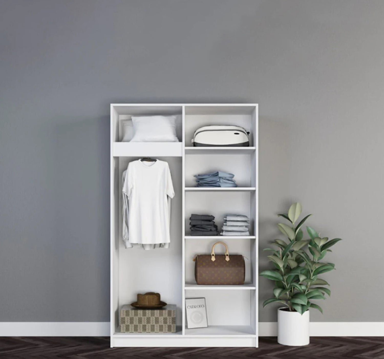 The MDF armoire from Oscar Rattan features a modern and practical design that suits various interior decor styles. Provides ample storage space to organize clothes and personal items, with multiple shelves and rods for hanging clothes, helping to keep things organized and easily accessible.