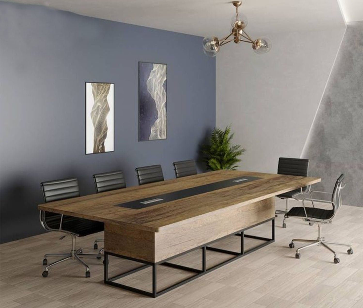 Oscar Rattan Spanish MDF Corporate Meeting Tabwith Metal Chassis A sturdy and elegant table, made of premium Spanish MDF with a sturdy metal chassis. Modern design that combines functionality and durability, ideal for meetings in modern business environments.