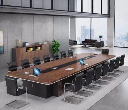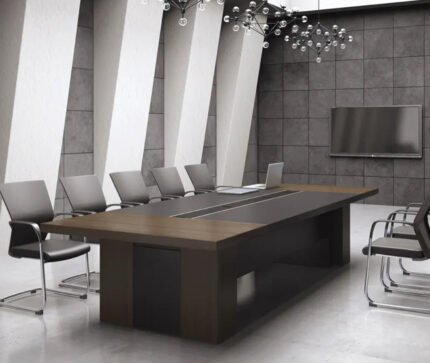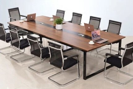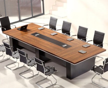 Oscar Rattan Spanish MDF Corporate Meeting Tabwith Metal Chassis A sturdy and elegant table, made of premium Spanish MDF with a sturdy metal chassis. Modern design that combines functionality and durability, ideal for meetings in modern business environments.