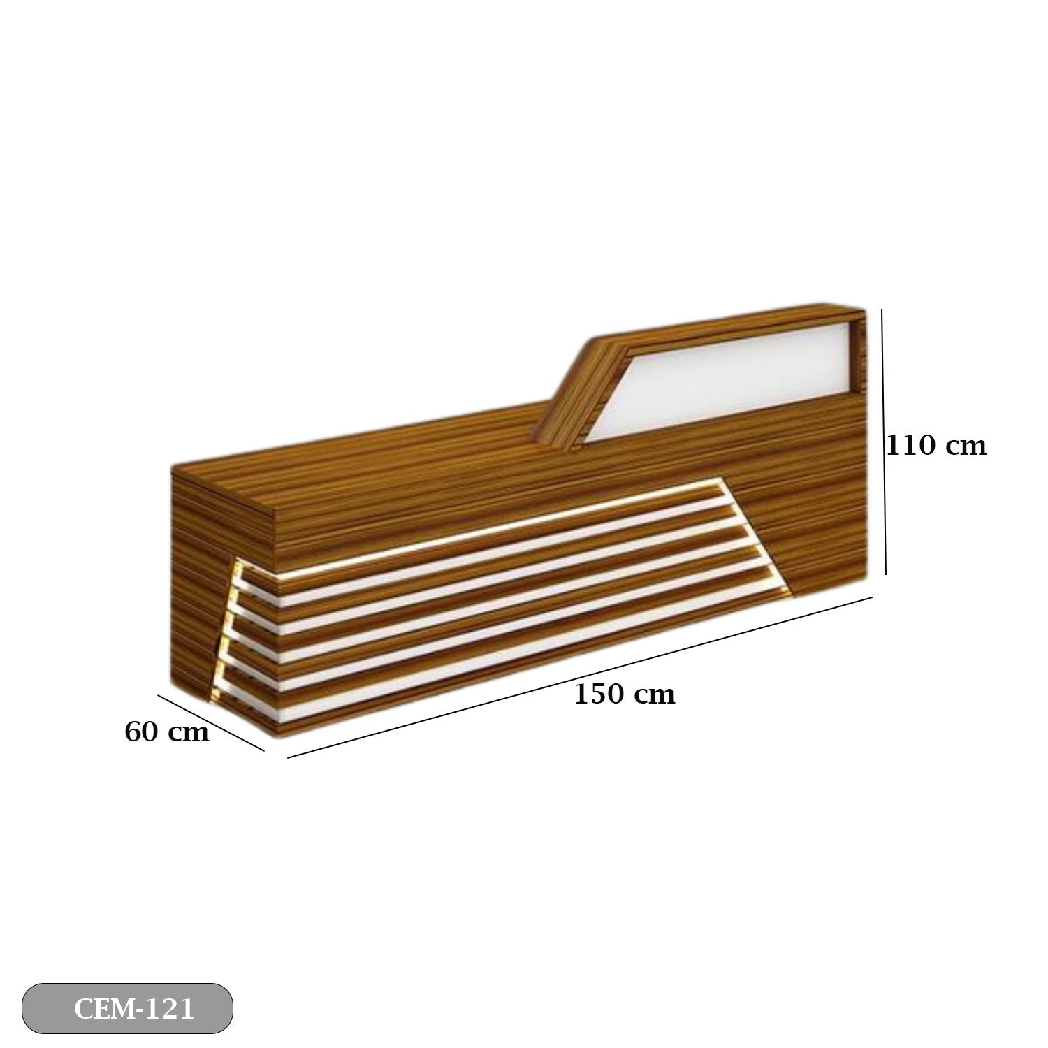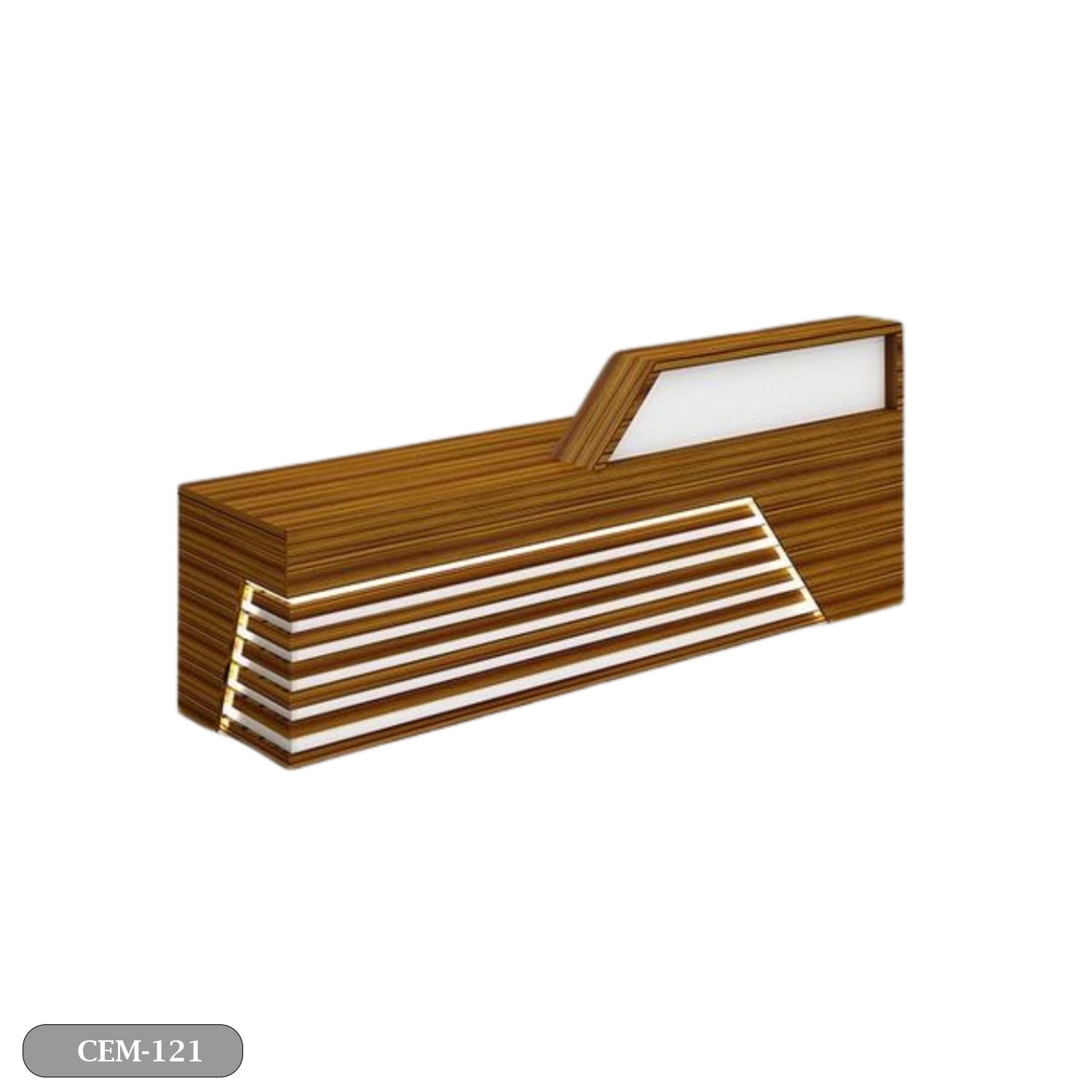 An elegant reception counter made of luxurious Spanish MDF wood, featuring a smooth and matte finish that gives it a modern and elegant character. The warm colors of the wood complement its simpdesign lines, providing a professional and attractive look. Its spacious surface has plenty of room for desk tasks, with hidden storage keeping things tidy and organized. Perfect for making a welcoming first impression in any modern office environment.