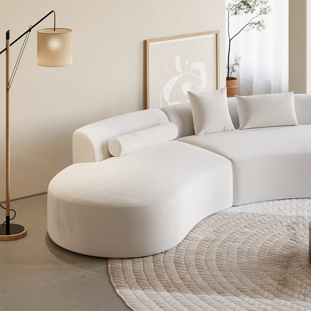 Modern White Curved Velvet Sectional Sofa 2 Piece 4-Seater Chaise with 3 Pillows