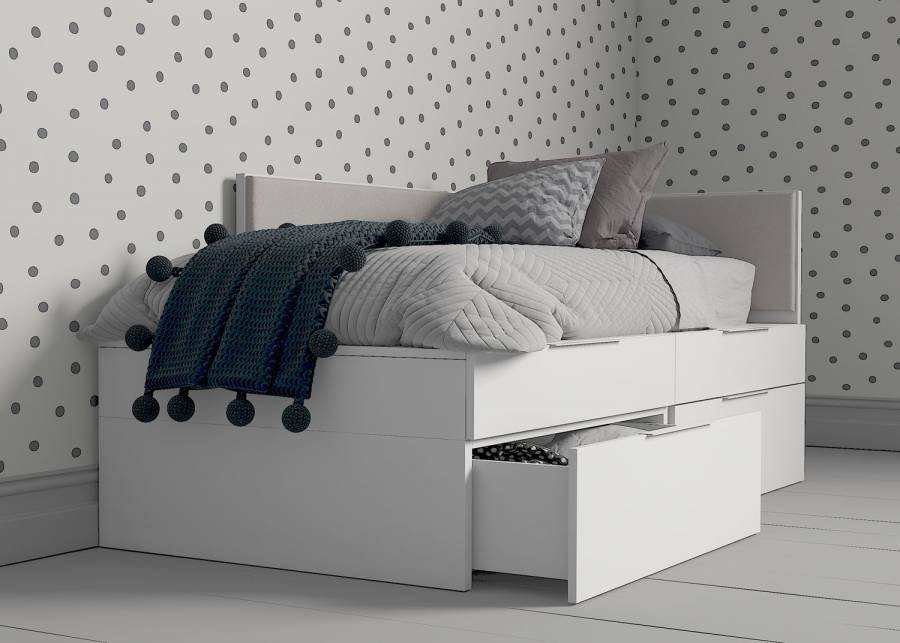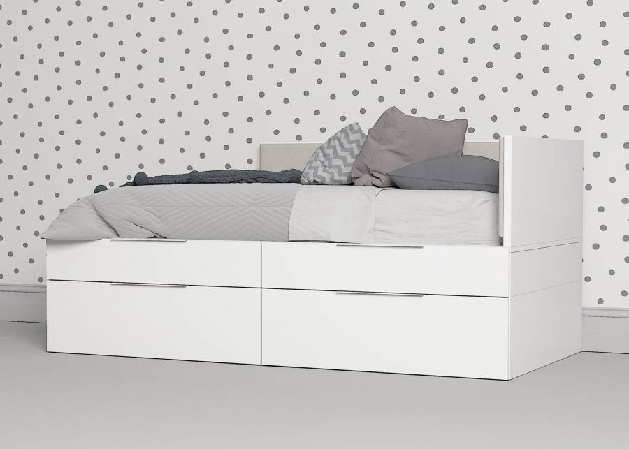 Modular bed 90 x 190 with 2 drawers base with guides + 2 stackable
