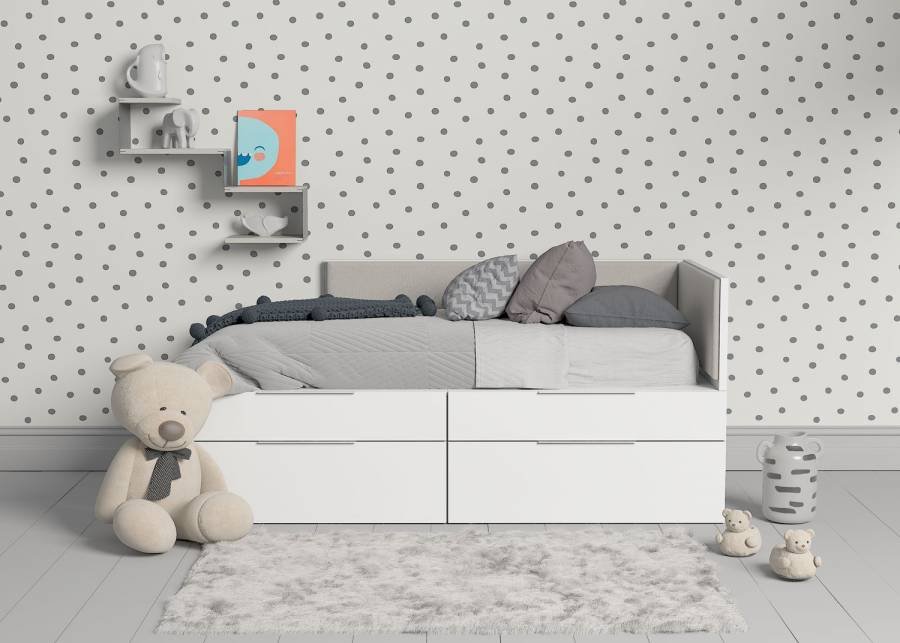 Your children may want a different layout when they are small and, as they grow, have other preferences. The possibility of configuring the room by placing the modules in different ways will make you feel that their bedroom grows and changes with them . In this case, two continuous drawers make up the base of a 90 x 190 bed , in addition to having lower stackable drawers as a plus for greater storage space.