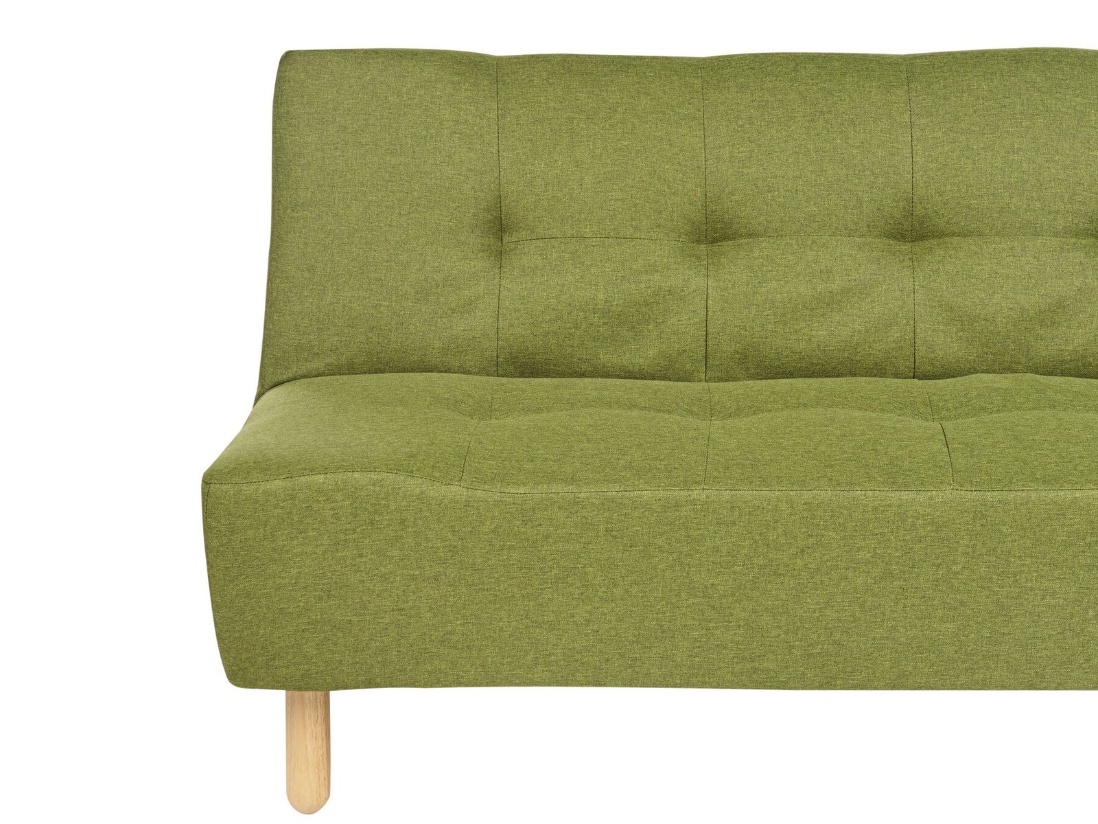 - The thickly padded seat is upholstered in soft fabric with decorative stitching and features sturdy wooden legs for stability.