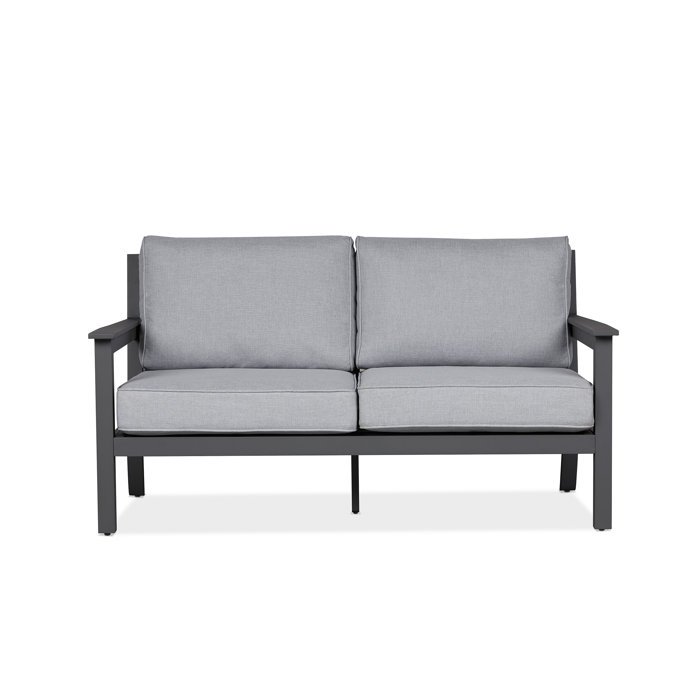 Make a splash with this sleek, metal-framed loveseat! Built with powder-coated aluminum, it’s UV and rust-resistant making it perfect for your outdoor oasis. The symmetrical design seats two, complete with closed-cell foam cushions wrapped in olefin fabric. The cushions are removable and easily attach back with hook & loop fasteners. Plus, this loveseat levels up with its own feet, ensuring stable lounging. Just imagine sinking into this outdoor stunner as the sun sets. Pure bliss!