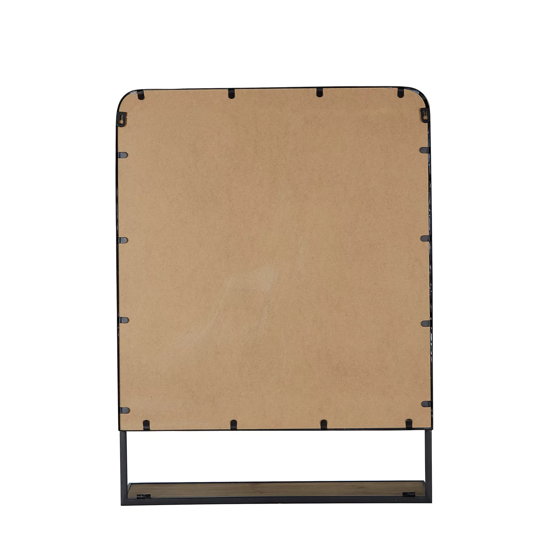 A wall mirror with a metal black frame helps enchanting the decor, whether in the livingroom, bedrooms, or the bathroom.the wooden shelf can be folded to put decorating items or beauty products,it is functional and stylish.