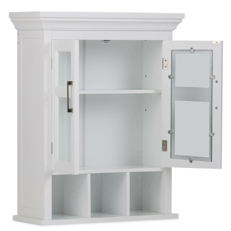 Would you like a little more room in your bathroom? The Revvd Wall Mounted Bathroom Cabinet bureau has two entryways leading to a movable rack and three open cubbies.