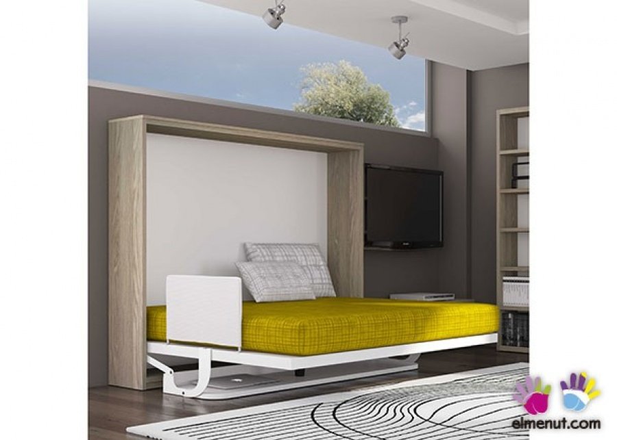 Horizontal folding double bed (Sinkro 35 model), with folding desk. Mattress size 135 x 190.
