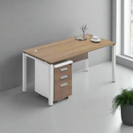 An employee desk produced by Oscar Ratan Company, made of high-quality Spanish MDF wood, combining elegance and durability. It features a modern design and clean lines, with a spacious surface that provides enough space for desks and papers. It has built-in drawers with smooth metal handles for storing documents and personal items. This stylish desk adds a professional touch to any work environment and enhances productivity with its practical and attractive design.