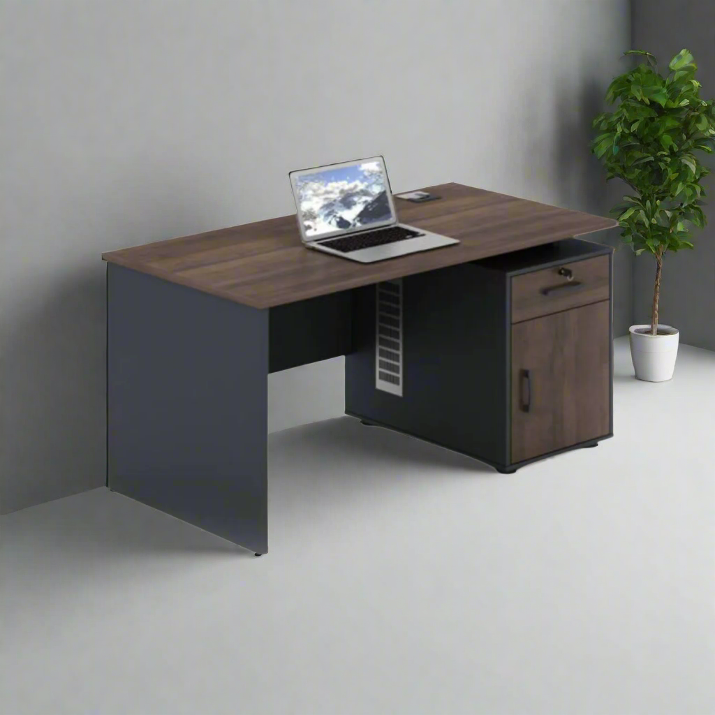An employee desk produced by Oscar Ratan Company, made of high-quality Spanish MDF wood, combines elegance and durability. It features a modern design and clean lines, with a spacious surface that provides enough space for desks and papers. It has built-in drawers with smooth metal handles for storing documents and personal items. This stylish desk adds a professional touch to any work environment and enhances productivity with its practical and attractive design.