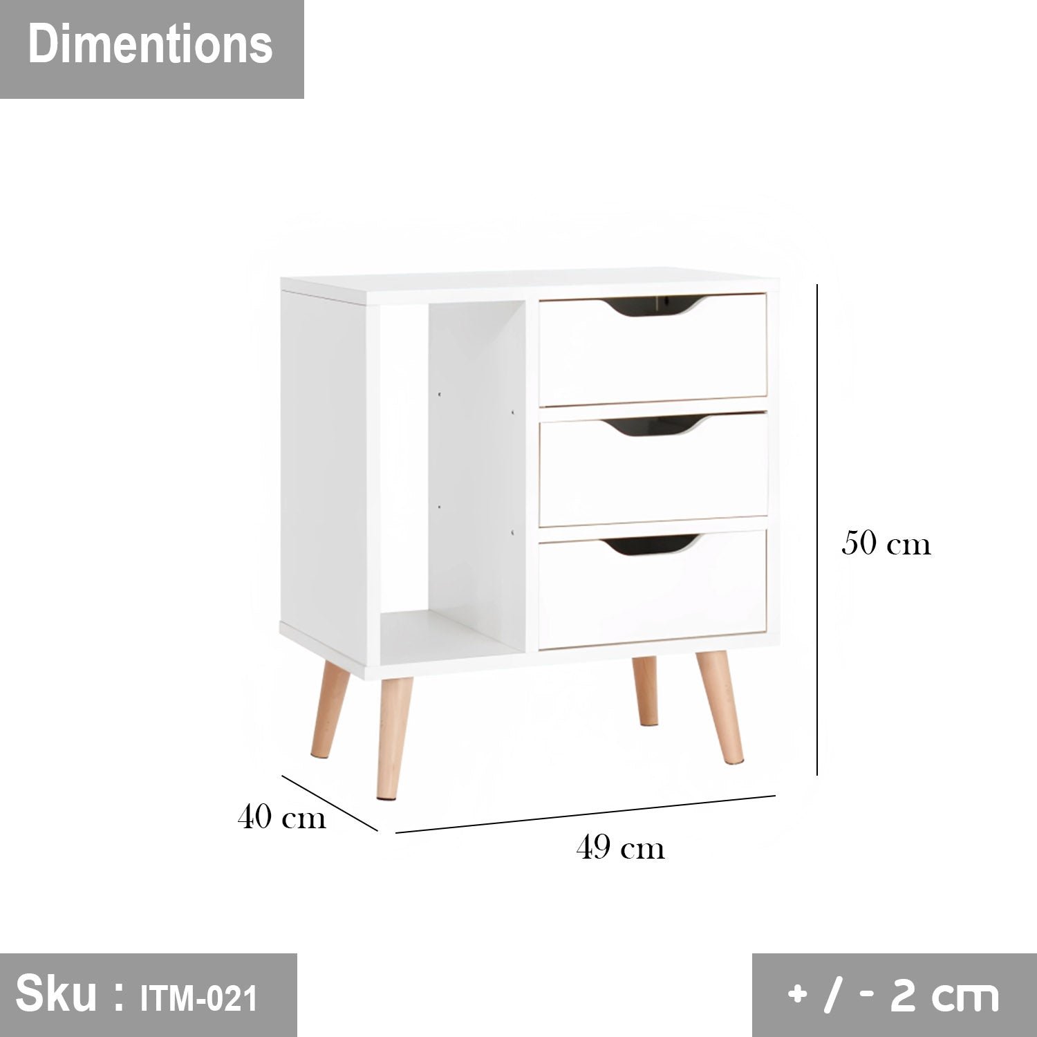 Spanish MDF wood nightstand – ITM-021 – 50cmX60cm
