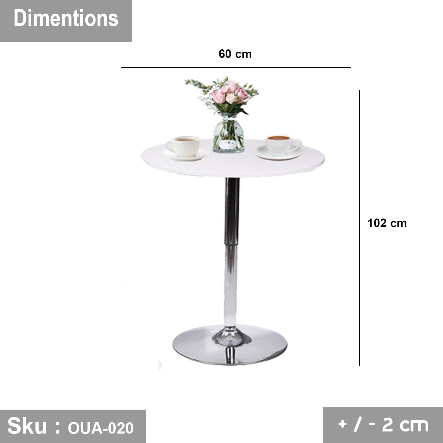 Chair: diameter: 38.5 cm – back height: 33 cm – base height: from 60 cm to 80 cm