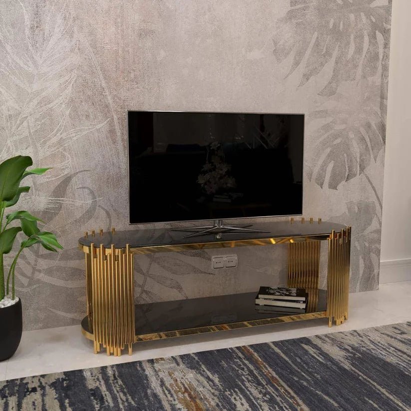 The Oscar Rattan TV table features a modern design that combines practicality and elegance. Designed to provide suitable space for the TV. Its sturdy construction provides stability and support, while the metallic luster adds a touch of luxury to your living room. Its elegant design makes it the perfect piece to coordinate with modern decor, while maintaining simplicity and functionality all at once.