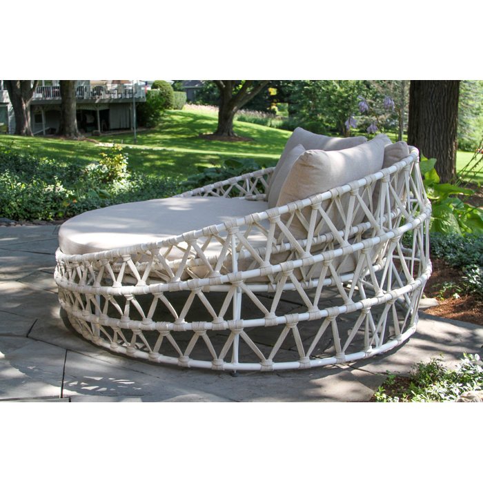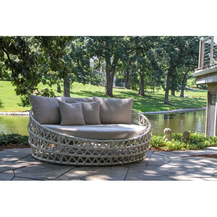 Elevate your outdoor sanctuary with this breezy patio daybed, a harmonious blend of coastal style and plush seating. Crafted with a powder-coated aluminum frame that effortlessly defies the elements, this daybed is finished with nautical-grade white rope detailing for a touch of texture next to the pool or on your porch. The round bed base offers seating for two, making it an ideal spot for lounging in the sun or enjoying a good book. Plus, it comes with six off-white, fade- and weather-resistant cushions, complete with removable covers for easy cleaning. To keep this bed looking good, we recommend storing it away when it’s not in use.
