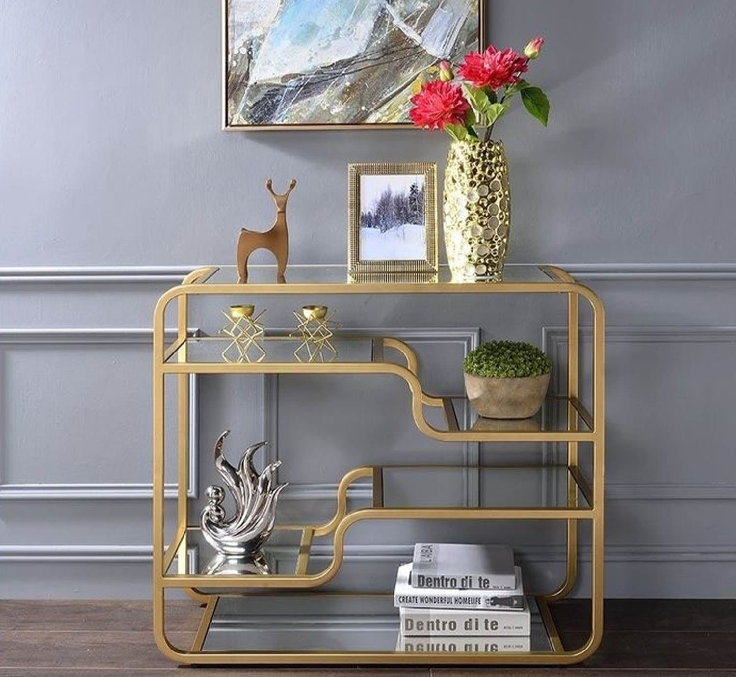Dareour console, electrostatic paint and glass