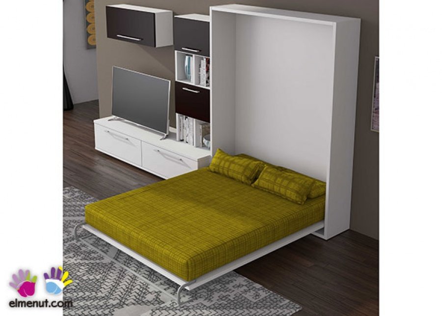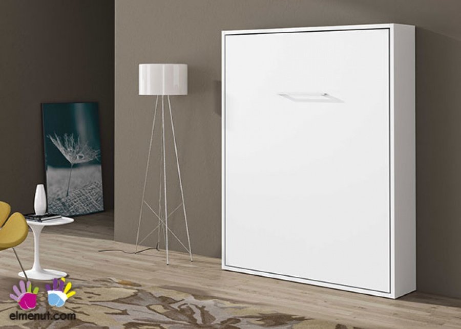 Vertical folding bed measuring 150×190 with slatted base. Structure size for 150 x 190 mattress: 207 hx 166 x 34.5 F. When opened, it folds down to 211 cm