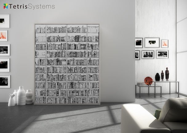 Modular living room with a vertical folding double bed for a 150 x 190 mattress.