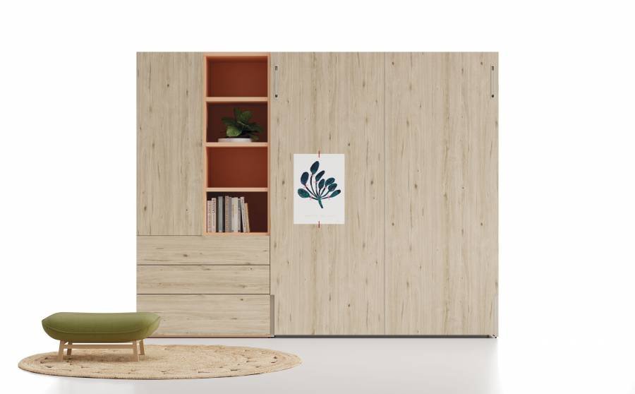 This innovative series of folding beds is characterised by following the most avant-garde design trends, so that the structural frame is hidden from view, which favours the effect of continuity and the integration of the beds with other complementary elements of the programme, such as wardrobes or adjoining lofts.